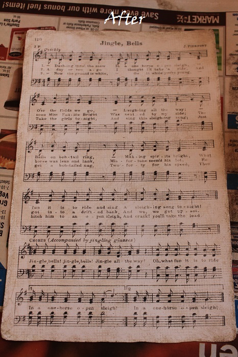 Today I’m sharing a Christmas Art project that is super cute and so easy to do. It all started when I saw the cutest scrapbook paper at Hobby Lobby a few months ago that had the lyrics to Jingle Bells on it. It was all muted and antiquey and I had to have it. They really do have the best scrapbook paper there. If you have been here before you know I love scrapbook paper. Not for scrap-booking, no. For other stuff like art and light switch covers.