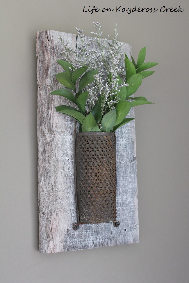 The bike basket was a great upcycle and fits on this ladder perfectly.