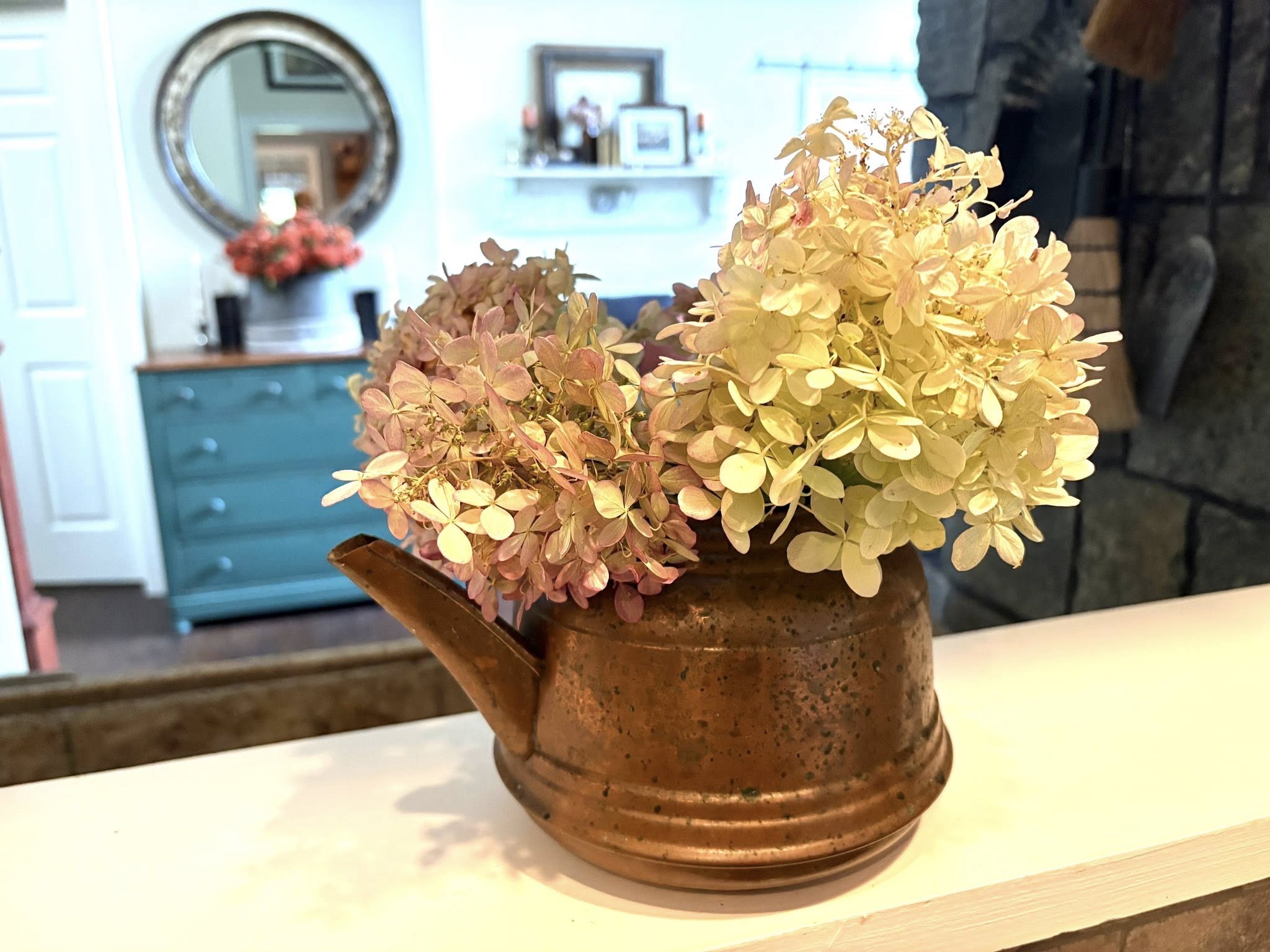 Dried hydrangeas with faux eucalyptus stems