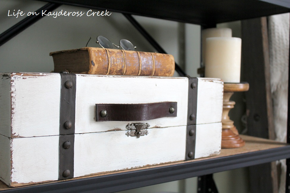 I’d seen this cute idea on Pinterest where someone had used a box that they had built. I’m already ahead of the game here with my sweet find. I decided to paint it white using chalk paint. I love the softness it gives to a piece. It took 2 coats but covered fairly well…
